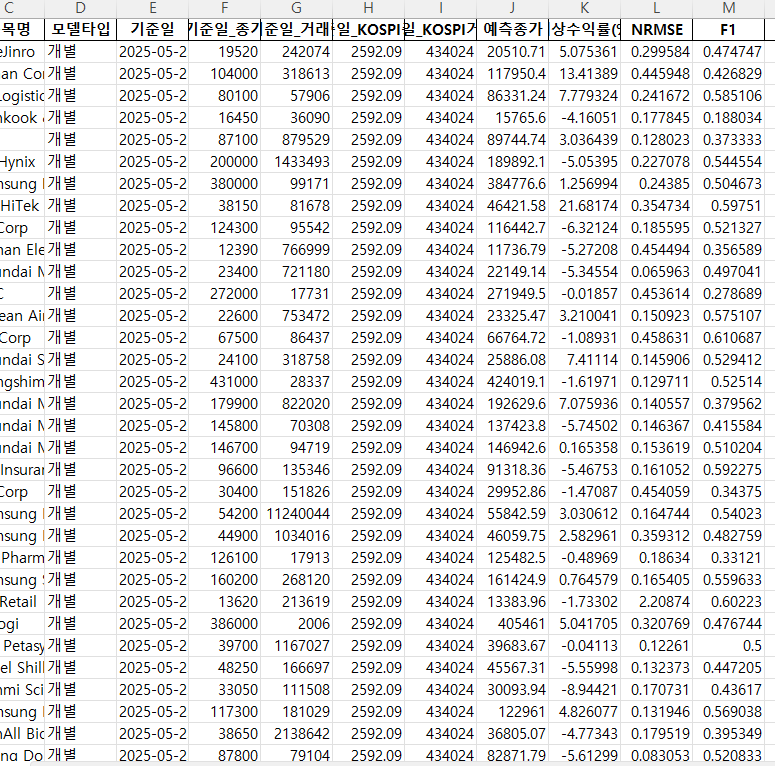 엑셀로 output을 뽑아봤어요.