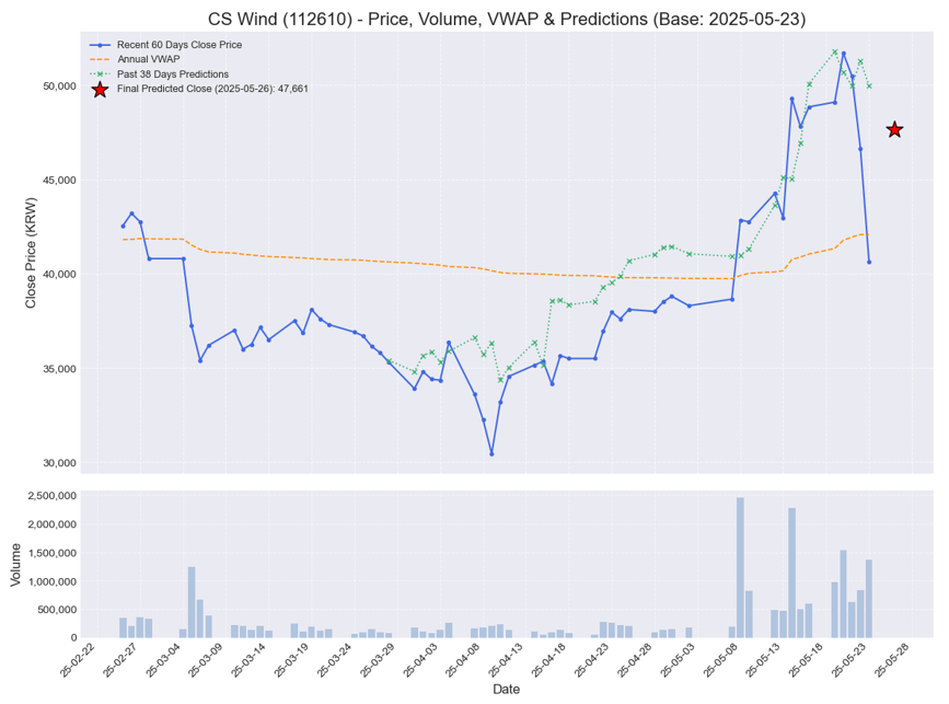 이중 추천할만한 놈을 엄선해서 Recommended_stocks으로 정리해주게끔 해서 내일 주가를 예측하고, 내일 장이 마치면 실제 종가를 업데이트해서 맞고 틀리고를 표시하면서 당분간 그 흐름을 지켜보려고 합니다. 아직 전혀 검증되지 않았고, 계속 모델을 가다듬고 있는 중입니다. 많은 응원부탁드립니다. 파이썬으로 추천한 종목에 대한 차트를 대략적으로 그려봤습니다.